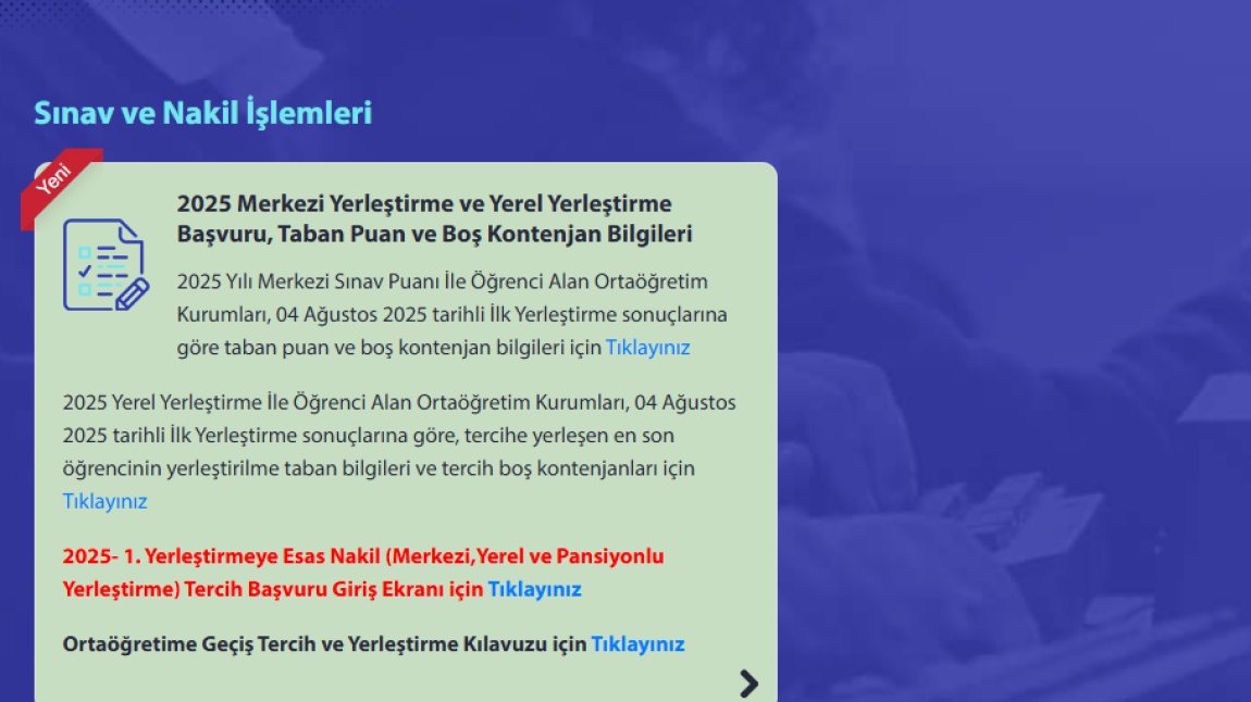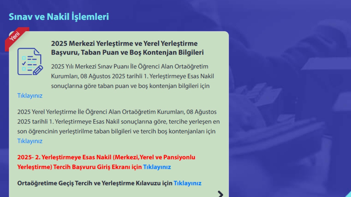 • 2025 LGS 1.NAKİL BAŞVURULARI BAŞLADI